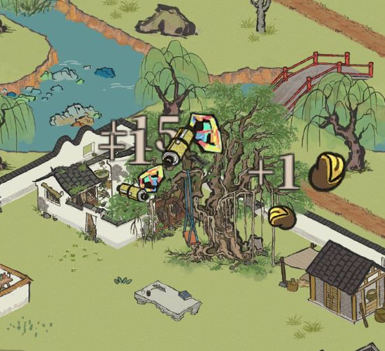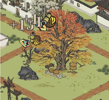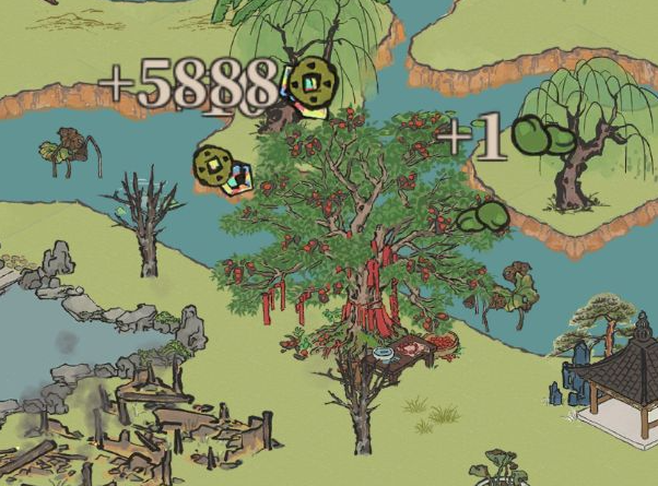 需要点所有的废旧房子,可能有些点过了点不动,但是没点过的每个都会有补天石铜钱和一桶水,那个水就可以救活树