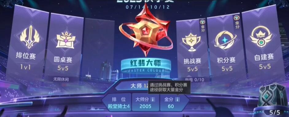 金分可以通过挑战赛、积分赛获得,创建巅峰自建赛房间需要花费598龙晶,也能获得大量金分。
