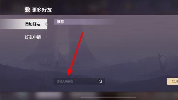 在添加好友中,在下方的“请输入识别码”选项框中,粘贴进去你复制的好友识别码,就能添加好友了。