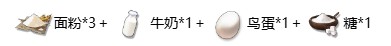 面粉x3+牛奶x1+鸟蛋x1+糖x1