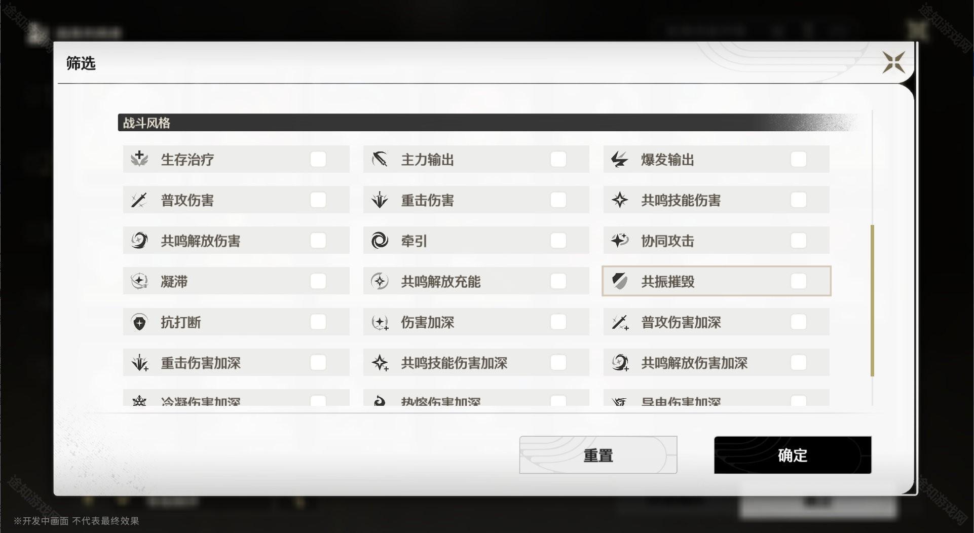 1.1版本更新后,针对不同共鸣者的战斗机制增加【战斗风格标签】筛选分类