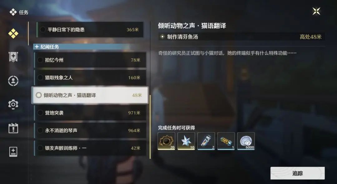 1、等待此处出现每日任务:倾听动物之声猫语翻译