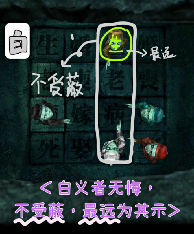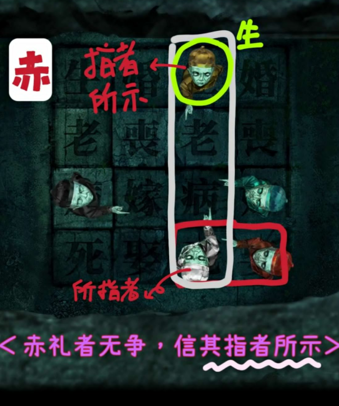 纸嫁衣3病生老生嫁怎么看出来的?相信很多玩家在玩第四章剧情的时候,会遇到一个问题,那就是小鬼指的文字生老病死婚丧嫁娶,我们需要解开谜题,但是无论我们怎么看都不认为答案是病生老生嫁,这是要怎么来解答呢?