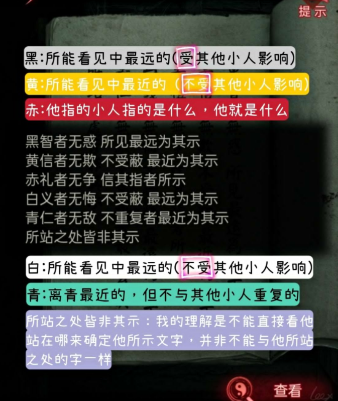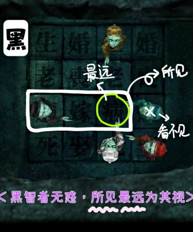 ①黑:所能看见的中最远的(被其他小人所占就代表看不见,排除)——病