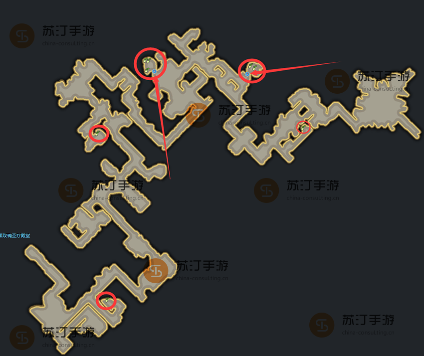 命运方舟圣疗殿堂地下这个副本的地图就是黑玫瑰圣疗殿堂地图右侧位置,在副本地图中也会有玩家们需要的摩可可种子,在副本中一共散落8个摩可可种子,还需要玩家打开2个隐藏入口,具体的位置在地图上标注清楚了,下面赶紧来看看吧。