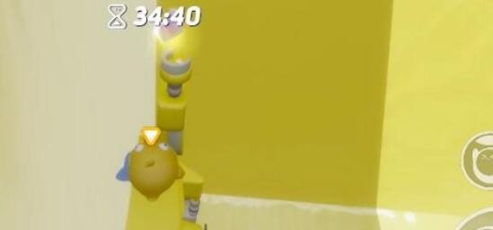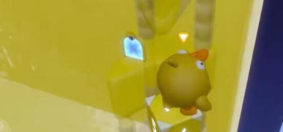 1、当玩家进入游戏之后,可以在场景当中看到一个弹射机关,借助它到达对面的头套上。
