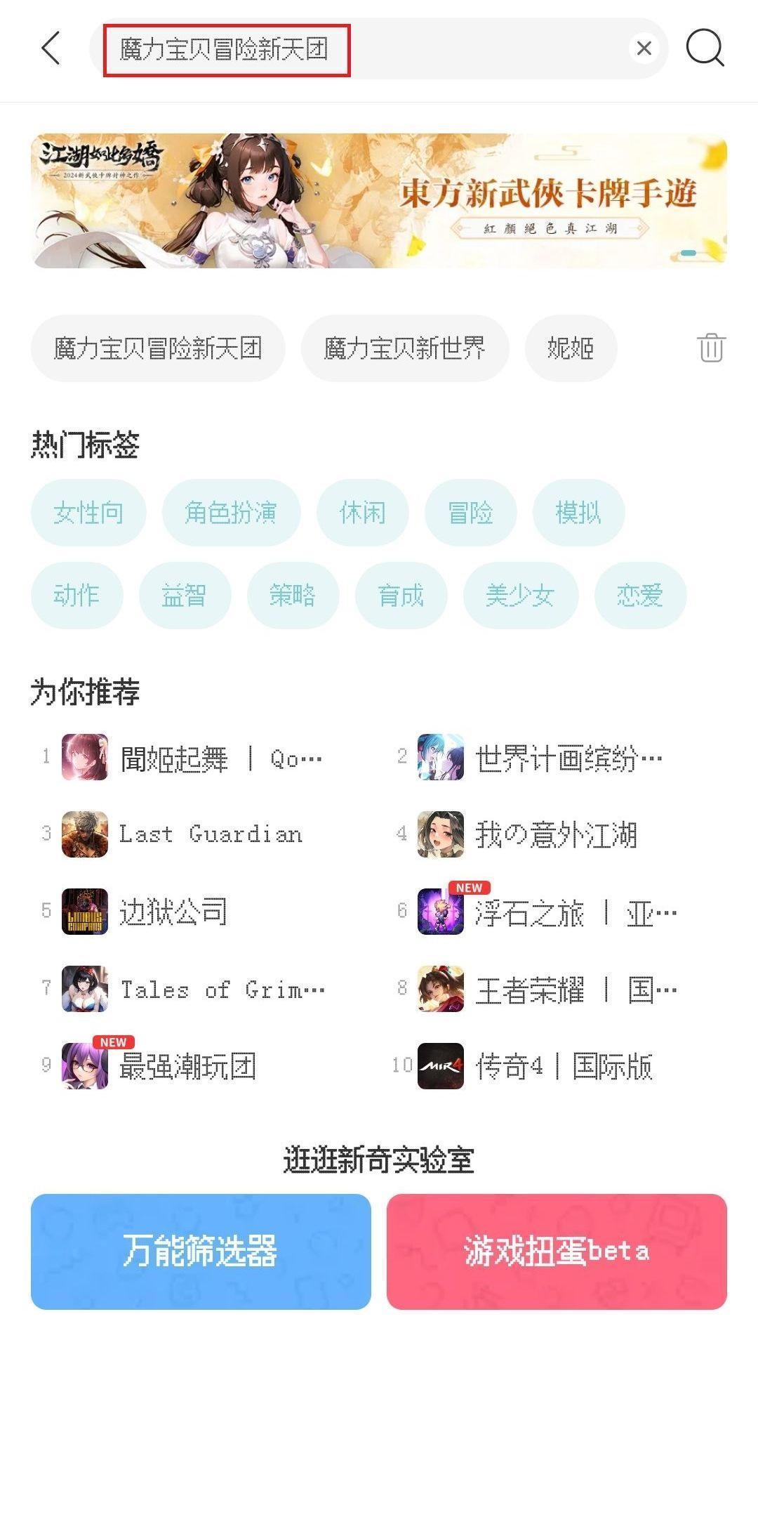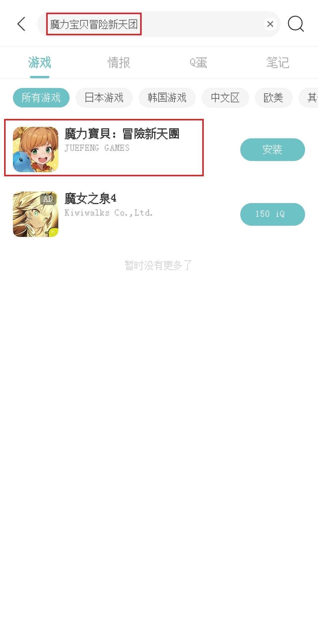 魔力宝贝冒险新天团在哪下载 魔力宝贝冒险新天团下载地址介绍 时间:2024/05/20 04:25:39小编:来源: 魔力宝贝冒险新天团在哪下载?魔力宝贝冒险新天团手游是由SQUARE ENIX正版授权全新改编人气端游《魔力宝贝》的放置RPG手机游戏。游戏近日在海外上线。那么我们在哪里可以下载到这款游戏呢?接下来就和小编看看《魔力宝贝:冒险新天团》下载地址介绍吧。 《魔力:宝贝冒险新天团》下载地址介绍 答:《魔力:宝贝冒险新天团》可以在QOO应用软件进行下载 下载步骤 1、下载QOO应用软件 2、打开QOO,点击右上角放大镜 3、搜索“魔力宝贝冒险新天团” 4、点击搜索出的“魔力宝贝冒险新天团” 5、进入页面,点击下方“下载”即可 相关文章 攻略心得 波西亚时光隐藏宝箱位置全介绍 波西亚时光隐藏剧情有哪些? 炉石传说酒馆战棋新随从野猪老水手怎么样 炉石传说酒馆战棋野猪人随从 无限暖暖满电行动效果及获取方法 暖暖无限少女 原神5.0食谱有哪些 原神5.0新增食谱获取方法 王者荣耀九周年返场皮肤有哪些 王者荣耀九周年返场皮肤介绍2024 阴阳师大江山宴会邀约怎么玩 阴阳师大江山抉择怎么选 明日方舟第三季更新预告:第三季何时上线有哪些新内容 热门推荐 最热排行 评分最高 超进化物语 下载 阴阳师 下载 吉吉影音 下载 元气骑士 下载 率土之滨 下载 梦幻西游手游 下载 荒野行动 下载 元游中国象棋 下载 蛋仔派对 策略 1.95 GB 蛋仔派对手游 v1.0.220 - 安卓版 下载 神庙逃亡2 冒险 78.68MB 神庙逃亡2 v5.0.0 - 安卓版 下载 恋与制作人 角色 688.37MB 恋与制作人 v1.9.0823 - 安卓版 下载 天天斗地主 休闲 26.10MB 天天斗地主 v8.00.041 - 安卓版 下载 我的安吉拉 模拟 80.53MB 我的安吉拉 v4.2.1.306 - 安卓版 下载 无尽的拉格朗日:砺舰归来 下载 unVEIL the world 下载 燕云十六声 下载 元气骑士前传 下载 元气骑士 下载 战魂铭人 下载 阴阳师 下载 率土之滨 下载 梦幻西游手游 策略 182.11MB 梦幻西游手游 v1.532.1 - 安卓版 下载 蛋仔派对 策略 1.95 GB 蛋仔派对手游 v1.0.220 - 安卓版 下载 游戏王:决斗链接 策略 303.87MB 游戏王:决斗链接 v1.0 - 安卓版 下载 三国演义:吞噬无界 策略 479.74 MB 三国演义:吞噬无界 v4.1.14 - 安卓版 下载 超进化物语 策略 282.66 MB 超进化物语 v1.1.18 - 安卓版 下载 用户评论 deving