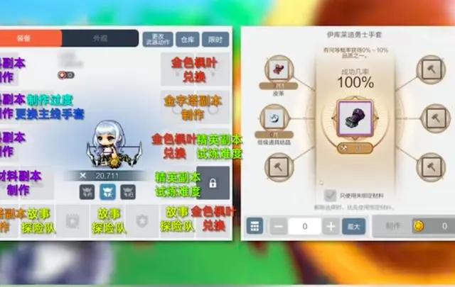 手套部位可以先用制作装过渡,之后再换成主线送的高级手套,并继承原手套的属性。