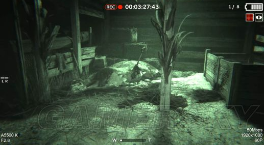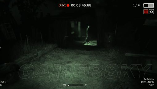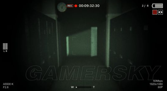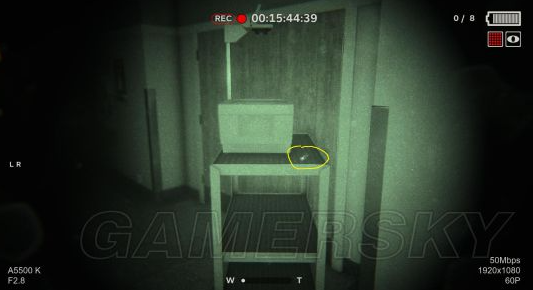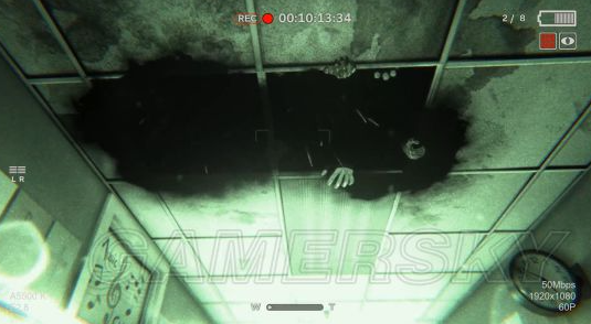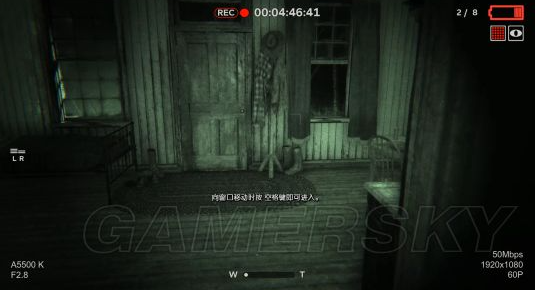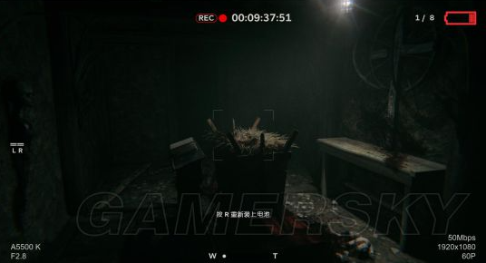 按一下鼠标左键,就可以拿电池了,赶紧走,这时候我们摄像机的电量差不多也要快没了!(电池1获取)出了这个房间,拿起摄像机向右会发现两个恐怖的大叔,在偷偷看咱们,和他们说话不吭声,看到发现了他们,两个人慢慢的往后退,消失在黑暗中。