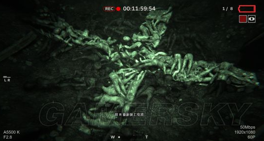 举起摄像机后,按F可以开启夜视镜,也可以按F键关闭夜视镜,节约电量。
