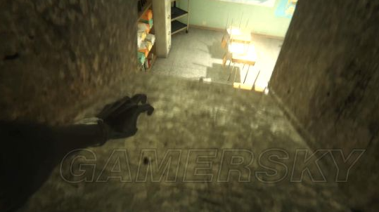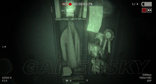 按鼠标左键拾取音乐盒,继续按住鼠标左键,会播放音乐,听起来音乐挺好听,但是独自一人在这黑漆漆的走廊里,这音乐总给人带来惊悚的感觉!果然,音乐刚播放完,走廊里就传来一个男人轻蔑的笑声。这个时候,如果你的摄像机往身后转的够快,你会看到,刚才在教室消失的黑影就你在身后,(由于消失的太快,我没有截图截下来,各位玩家到时候可以试试)同时这个时候,所有的柜子像着了魔一样,一个个的自动打开关闭个不停,外加恐怖的声音,本能的藏到了一个柜子里。