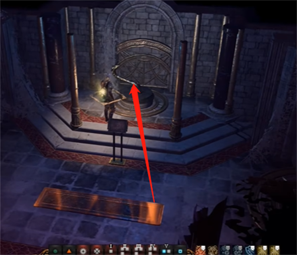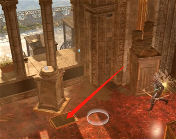 首先玩家需要先来到巫术商店,来到商店后前面有个幻影,与他对话可以开启四个传送门,选择最左侧的传送们。