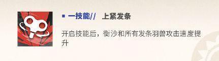 开启技能后,衡沙立即获得一个发条羽兽。发条羽兽攻击力提升,优先攻击重量最重的敌人,发条羽兽的攻击使目标短暂停顿