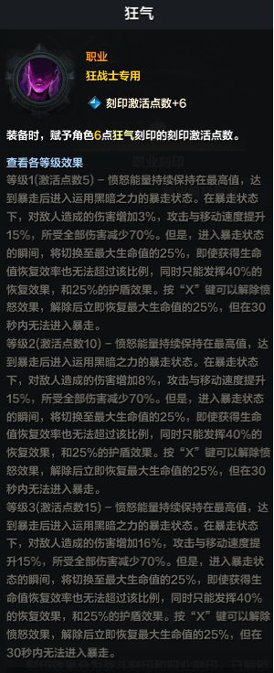 狂气,是一个狂战士的主流玩法,自带常驻的双速加成。