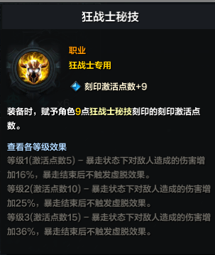 狂战士秘技,这个因为是狂战士比较含就按的一种流派玩法。
