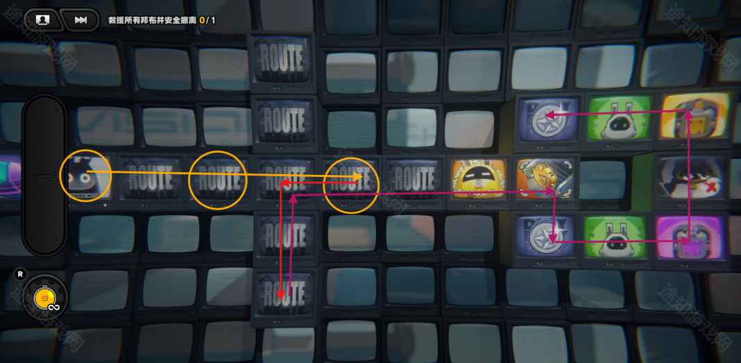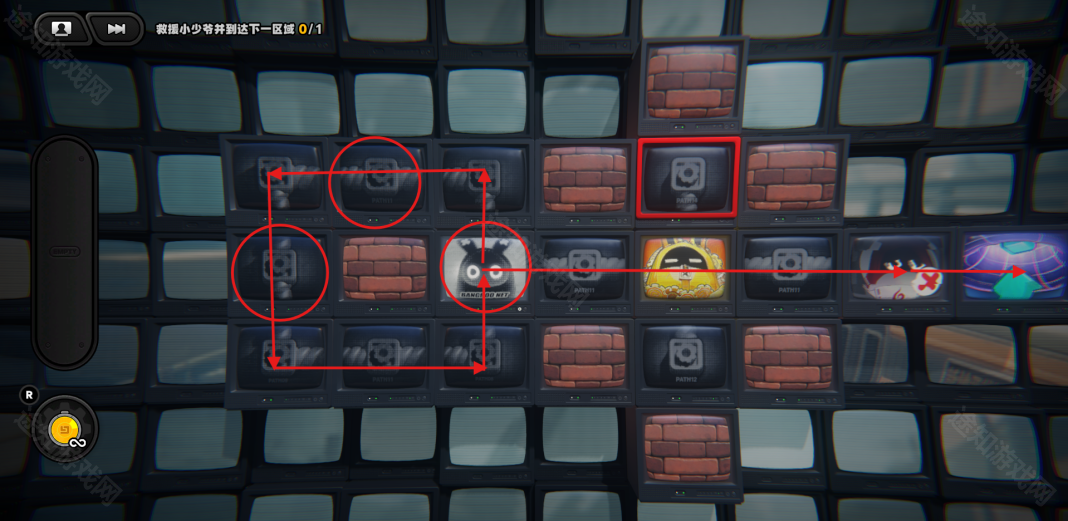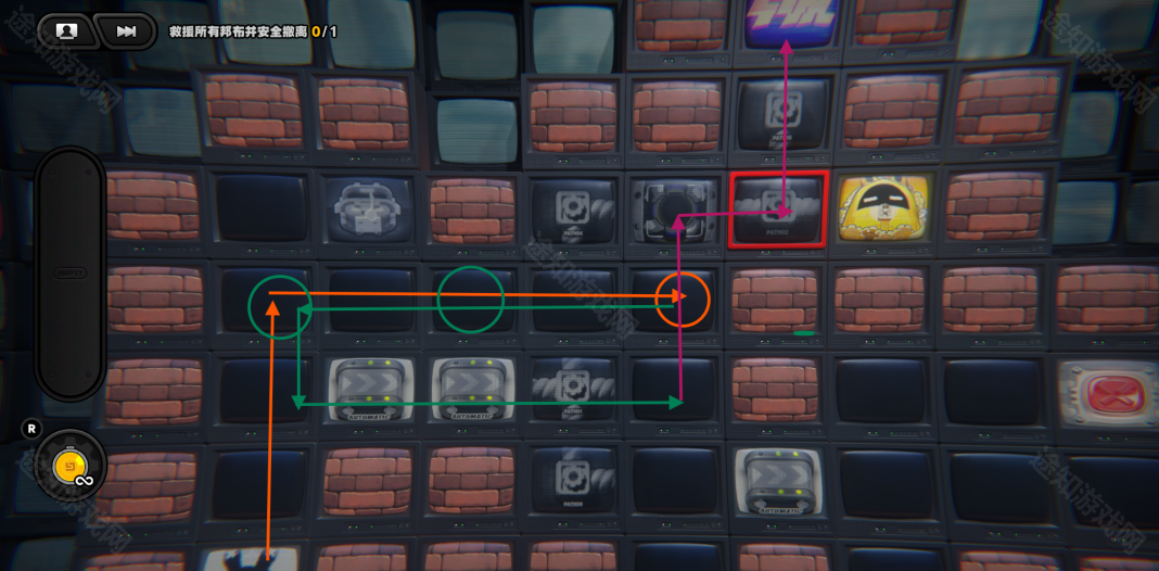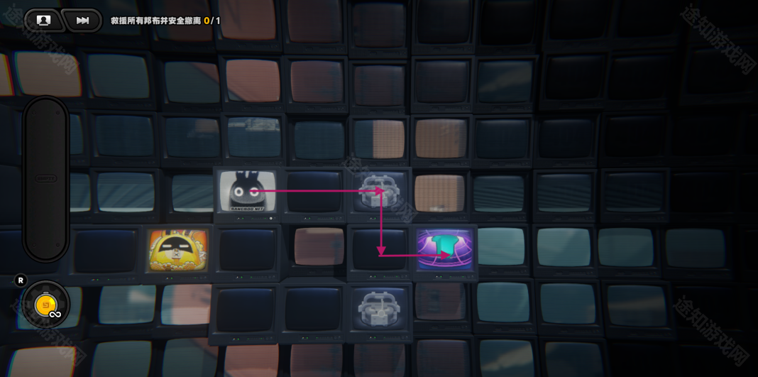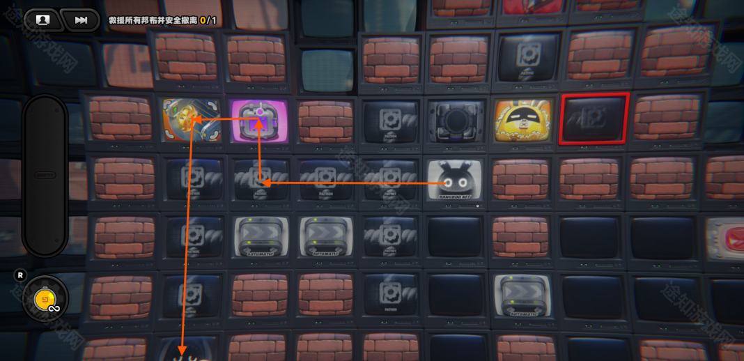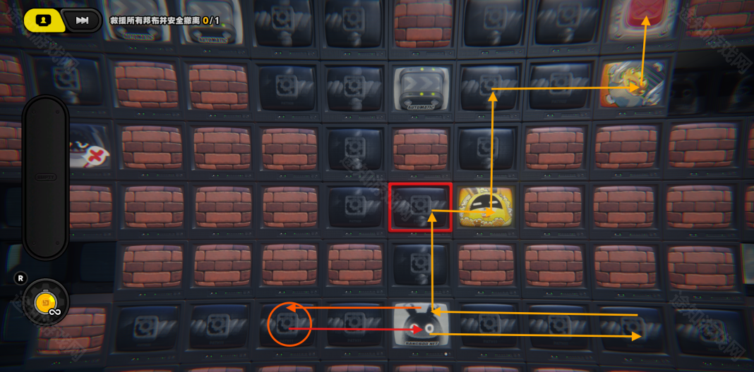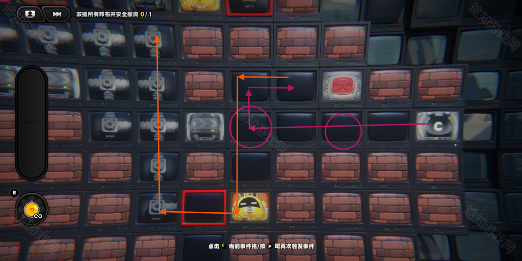 回到上一层,进入特定的格子会让黄金邦布走一格