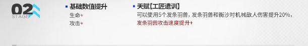可以使用5个发条羽兽,发条羽兽和衡沙对机械敌人伤害提升20%,发条羽兽攻击速度提升++