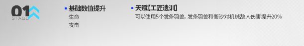 可以使用5个发条羽兽,发条羽兽和衡沙对机械敌人伤害提升20%,发条羽兽攻击速度提升+