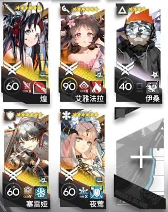 煌(精二60级)、塞雷娅(精二60级)、艾雅法拉(精二90级)、夜莺(精二60级)、伊桑(精二40级)