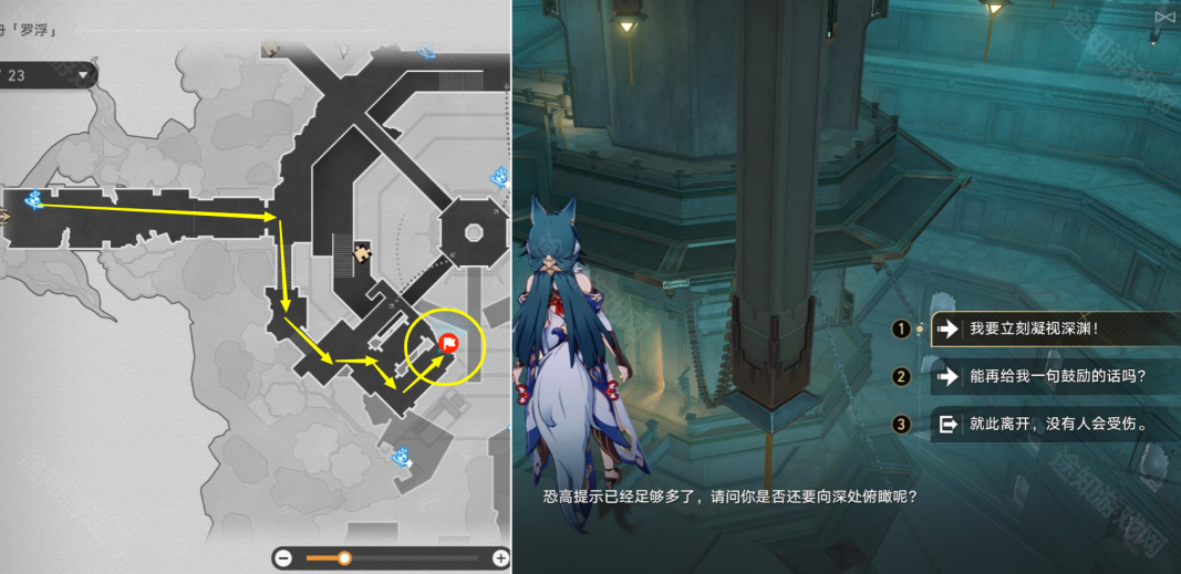 1、前往【幽囚狱-1层】指定位置,选择【俯瞰】