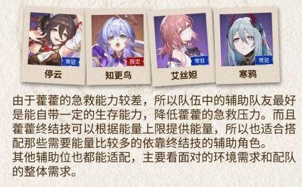 藿藿急救能力比较差,建议搭配能保证生存的角色