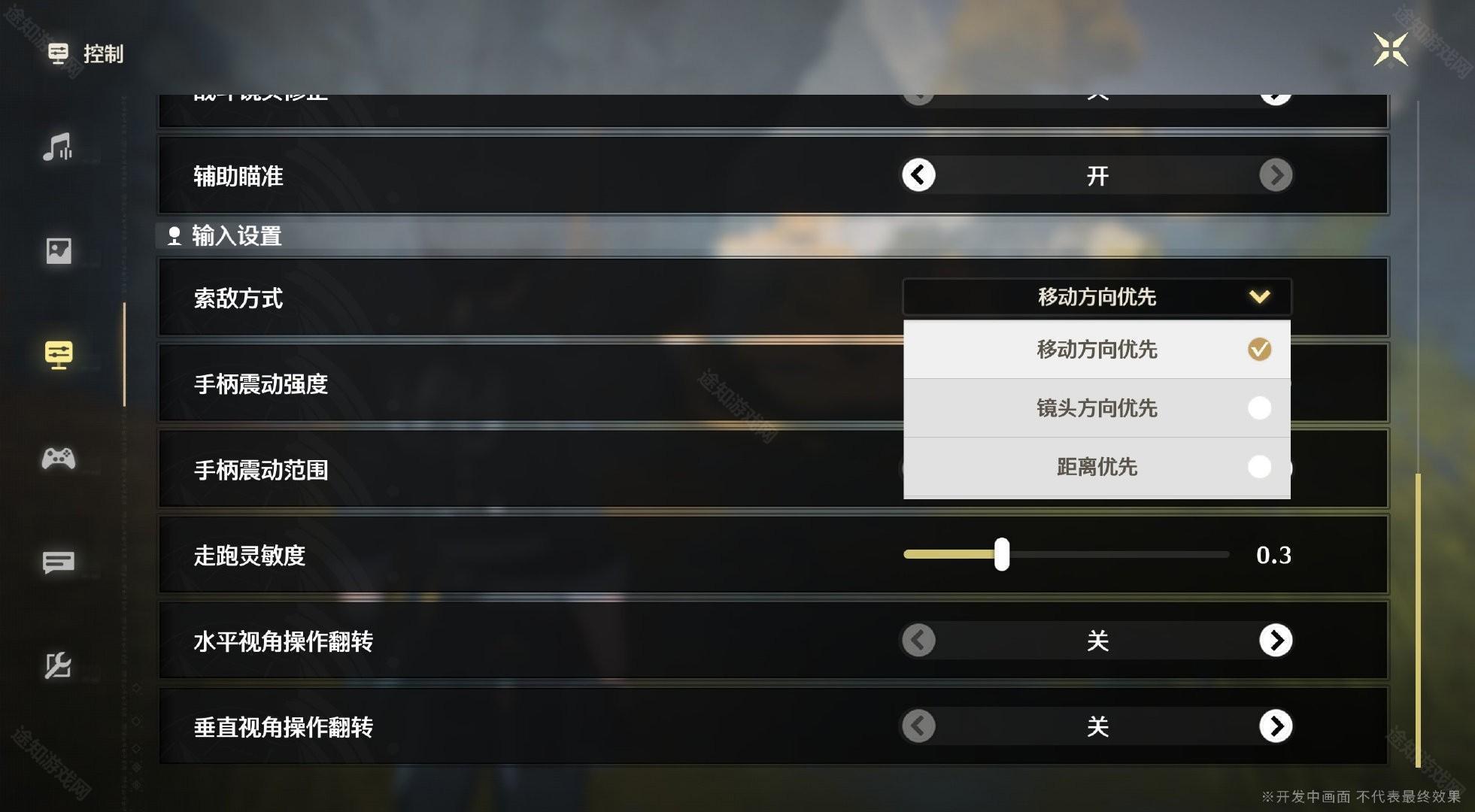 3、往下翻直到【输入设置】,点击下方【索敌方式】,调整成自己想要的即可