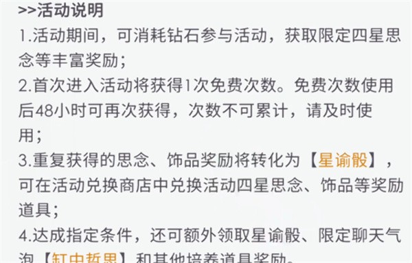 3、抽奖中重复获得的物品将会自动变为星谕骰可以用来兑换物品。