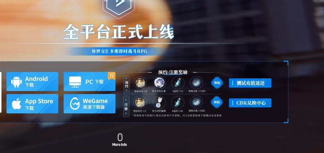 3、官网可以下载游戏,也可以领取内测充值返利、填写兑换码。
