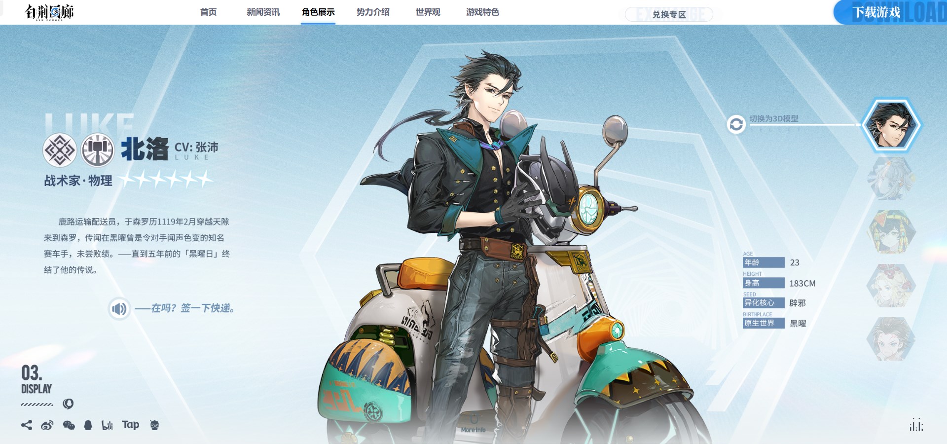 2、官网中有角色展示、势力介绍、世界观等栏目。