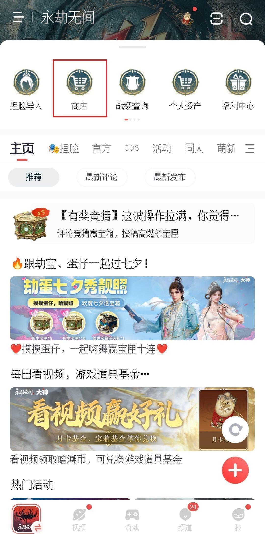 答:在网易大神中切换为永劫无间圈子后将上方白框往上拉即可看到商店