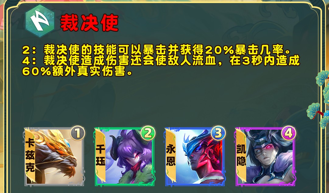 裁决使羁绊返厂,有我们熟悉的千珏。4羁绊新增流血+真伤。