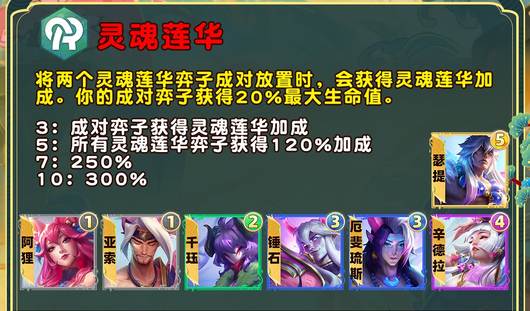 2、5灵魂莲华及以上无需放置,全部灵魂莲华棋子均可获得加成。