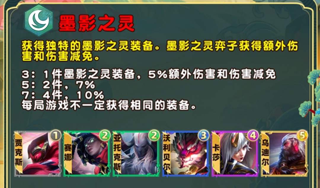 获得独特的墨影之灵装备。墨影之灵弈子获得额外伤害和伤害减免。