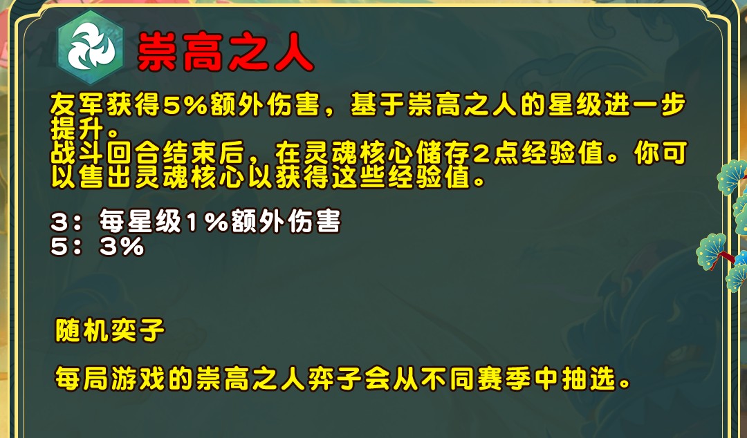 1、每局游戏会随机选择6名弈子拥有崇高之人羁绊。