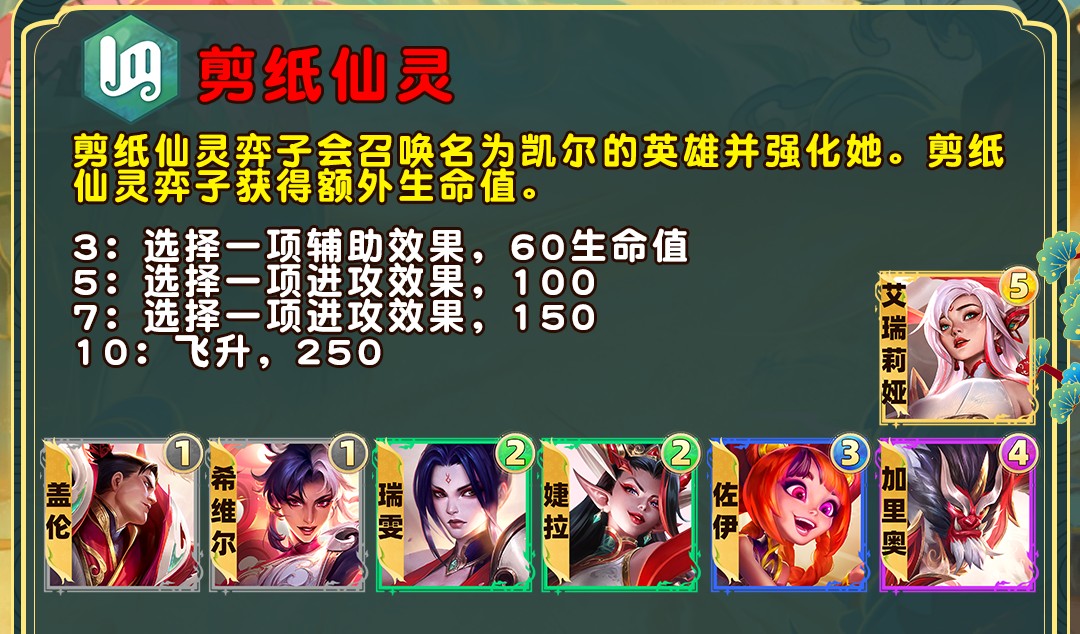 1、羁绊为召唤类羁绊,类似上个版本的乡村乐,但剪纸仙灵羁绊召唤天使开局直接存在。