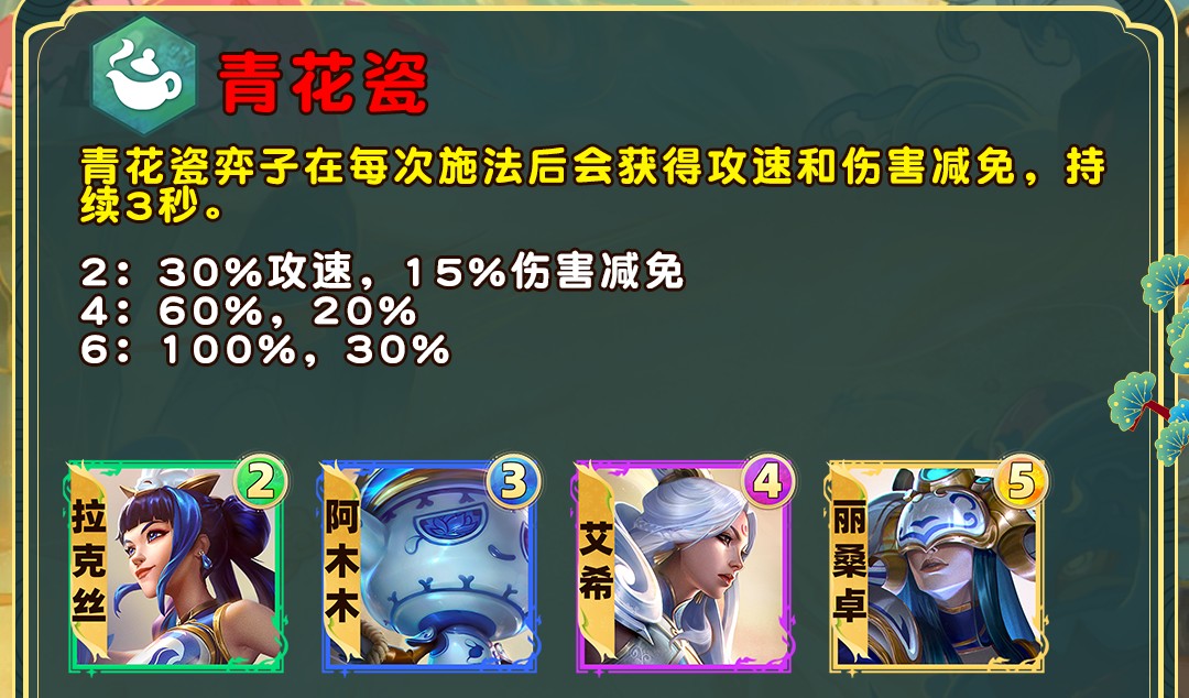 青花瓷弈子在每次施法后会获得攻速和伤害减免,持续3秒。