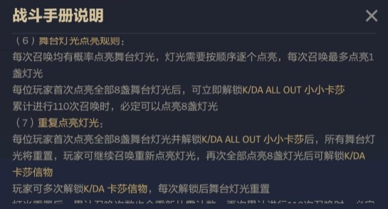 4、每次召唤有概率点亮舞台灯光,灯光需按顺序点亮,每次召唤最多点亮1盏灯光。