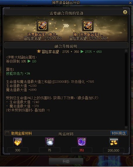 1、升级全身装备需要2106个材料,玩家要刷18周。