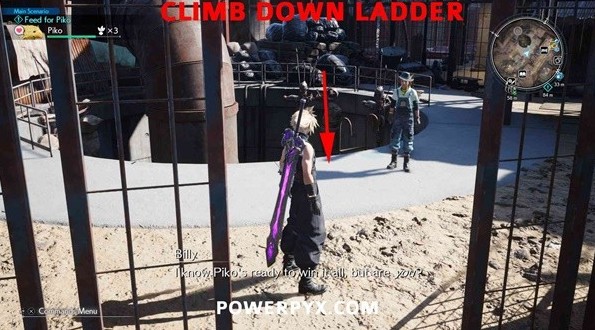 2、推进剧情到需要为皮科(陆行鸟)找食物,可以走下梯子来到尘埃漩涡东南角的一个有篱笆包围的区域后面。