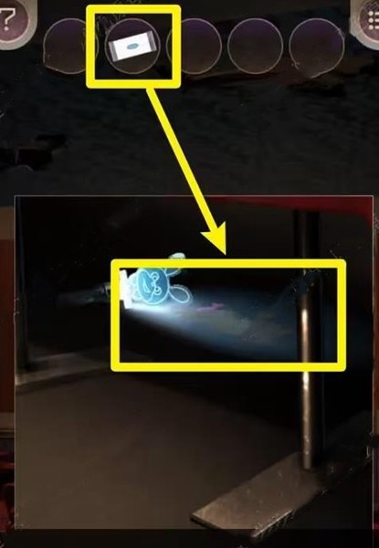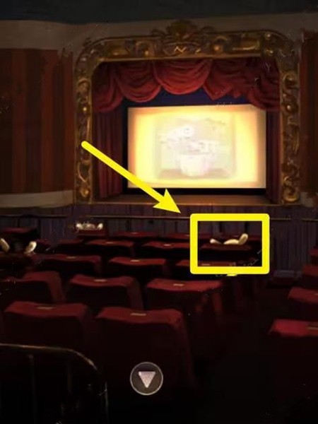 4、进入电影院,点击第二排右边的玩偶,调查椅子底部。