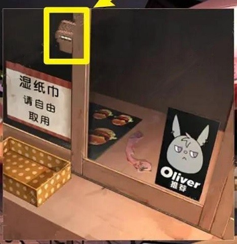 8、点击汉堡店的锁,根据木马的线索,将锁的图案转换为字母为GOODS。