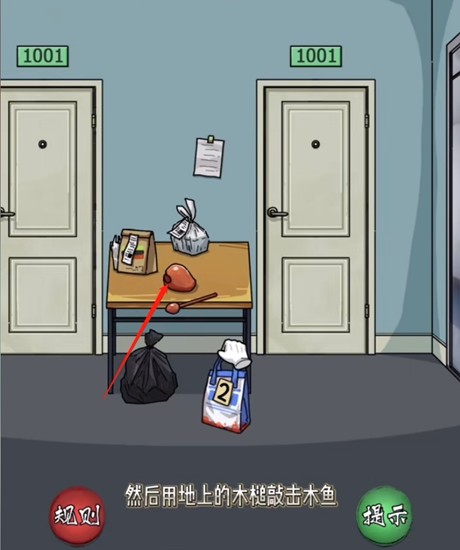 10、点击地上的棍子敲击木鱼。