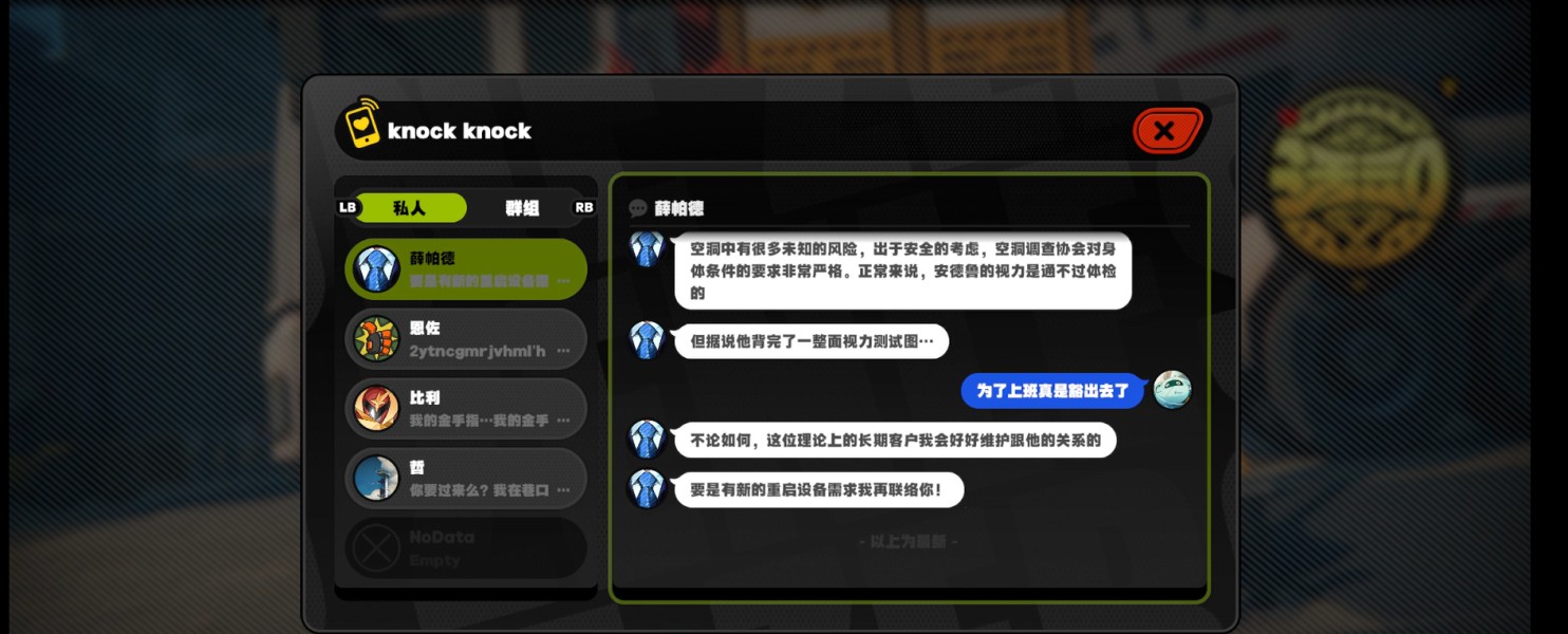 4、完成后在私信上与薛帕德联系即可完成委托,发现委托人为了工作把视力表背下来了。