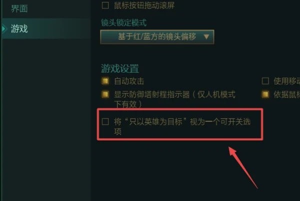 5、见下图,把“只以英雄为目标”这一栏的勾给去掉就行了。