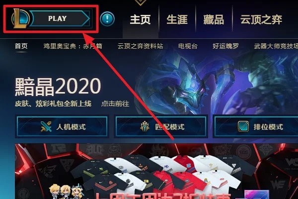 3、登录游戏后点击主界面上的“PLAY”按钮,开启任意对局。