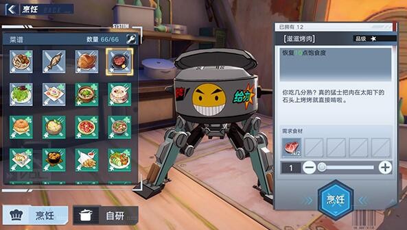 2、收集到兽肉*2,需要使用烹饪锅烹饪。