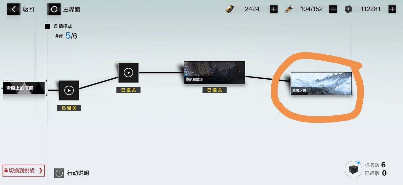 1、进入雪原上的信仰隐藏间章里的雪落之声关卡