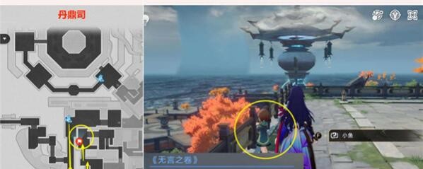4、接着来到丹鼎司和npc小鱼对话后获得第三本书无言之卷。