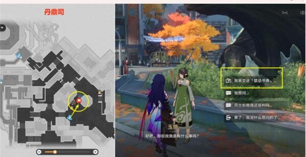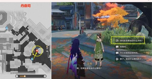 1、首先来到丹鼎司和npc玉络对话后选择请问是需要找回什么书吗?即可触发任务。
