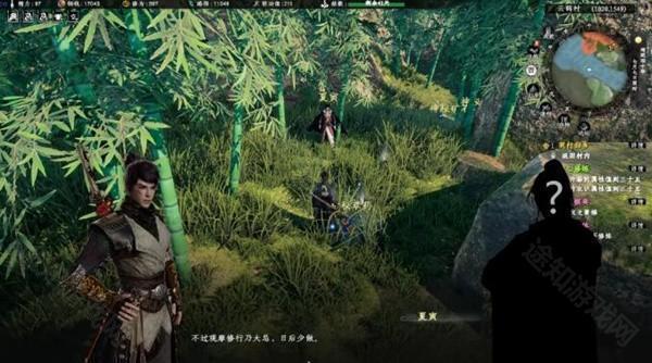 2、接着前往村外飞炼瀑竹林(1020,1549),找NPC夏寅进行比试。